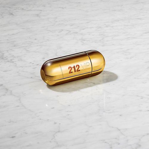 O frasco do perfume 212 VIP representa o puro objeto de desejo, o encanto do brilho dourado traz luz para o produto. Curvas femininas e atraentes. Detalhe para a tampa magnética.